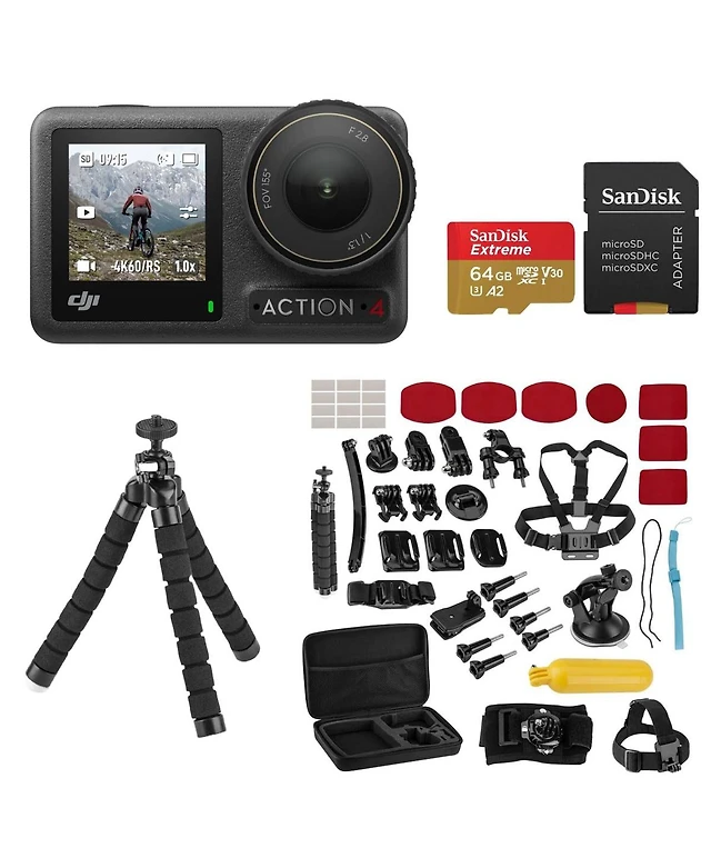 Dji Osmo Action 4 Camera Standard Combo, Bundle with Froggi Extreme Sport Accessory Kit and 64GB microSDXC Memory Card