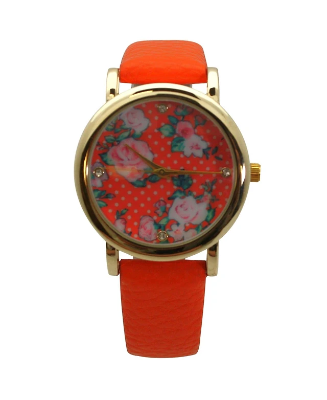 Olivia Pratt Orange Solid Colors with Flowers Details Women Watch