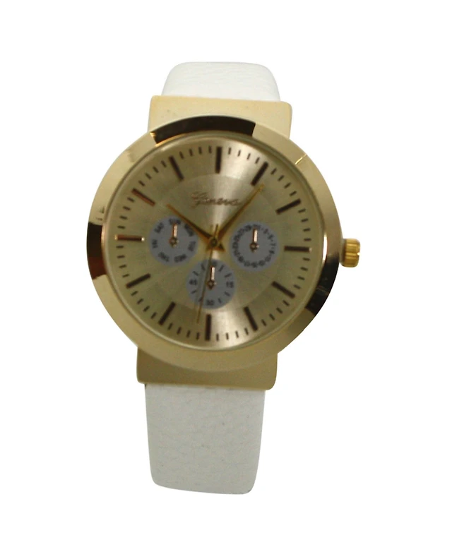 Olivia Pratt White Calendar Dial Gold Accented Leather Strap Watch
