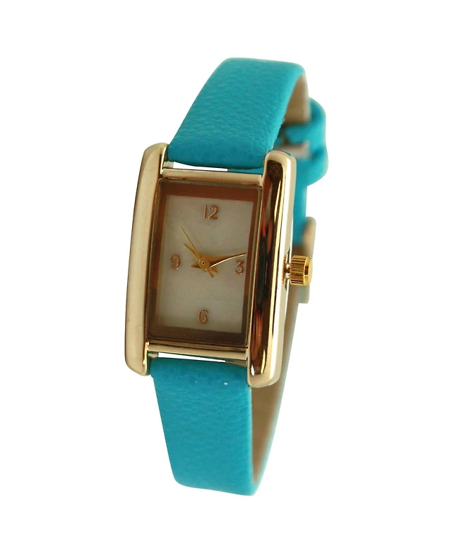 Olivia Pratt Light Blue Thin Gold Square Face Solid Faux Leather Women Watch