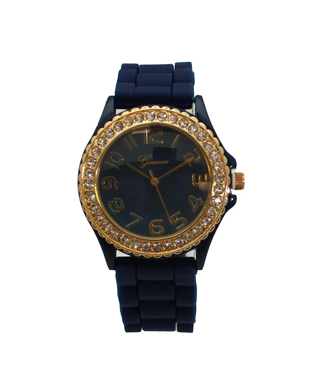 Olivia Pratt Navy Every Day Silicone and Rhinestones Colorful Women Watch