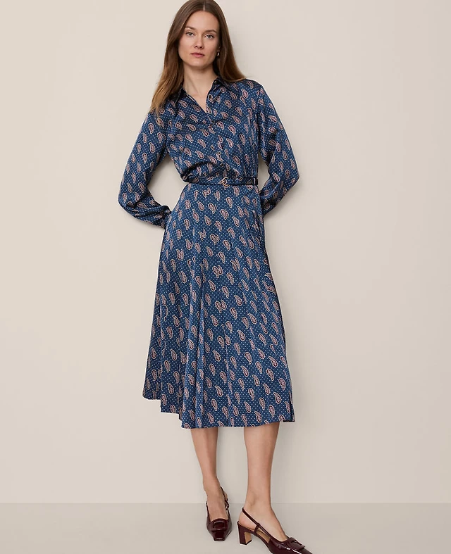 Ann Taylor The Trouser Column Midi Skirt Plaid Pure Chocolate Women's