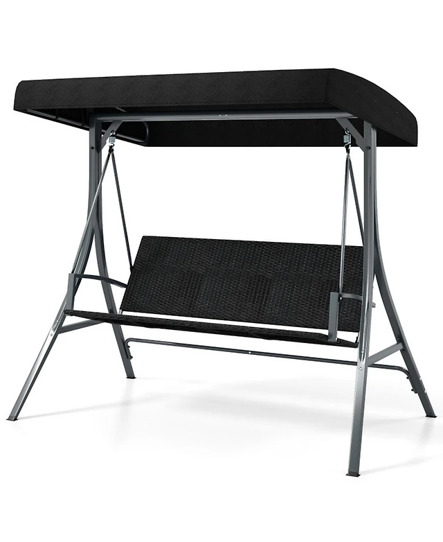 2-Person Outdoor Porch Swing with A-Shaped Metal Stand and Adjustable Canopy
