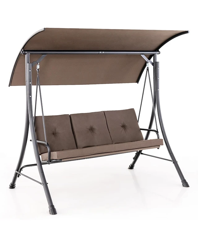 Gymax 3-Seat Outdoor Porch Swing w/ Adjustable Canopy Thickened Cushions Metal Frame