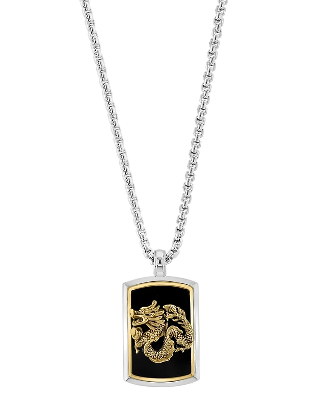 Vera Wang Men Black Spinel Dog Tag Pendant in Sterling Silver with Black Rhodium - 22"