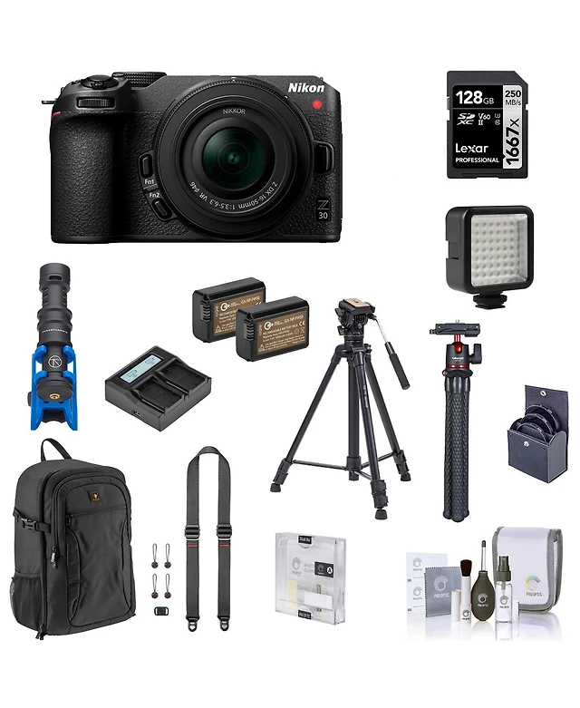 Nikon Z 30 Dx-Format Mirrorless Camera with Nikkor Z Dx 18-140mm f/3.5-6.3 Vr Lens, Bundle with 128GB Memory Card, Backpack, 2x Battery, Charger, Trip