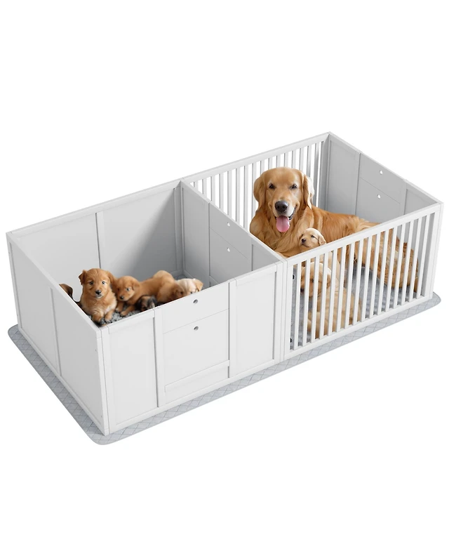 Pawhut Whelping Box For Dogs With Waterproof Whelping Pad Double Room