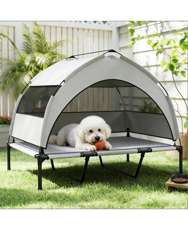 6thdruple Large Outdoor Gray Wooden Dog House with Covered Porch, Waterproof Roof, Elevated Pet Kennel Shelter for Large Dogs