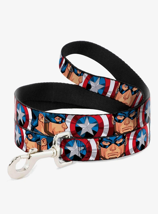 Marvel Captain America Face Turns Shield Close Up Dog Leash