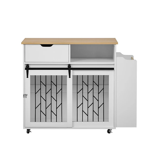 PawHut Dog Kennel Outdoor with Rotating & Adjustable Height Bowls, 2 Rooms