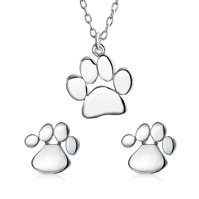 Bling Jewelry Dainty Dog Cat Pet Paw Print Pendant Necklace Animal Sterling Silver