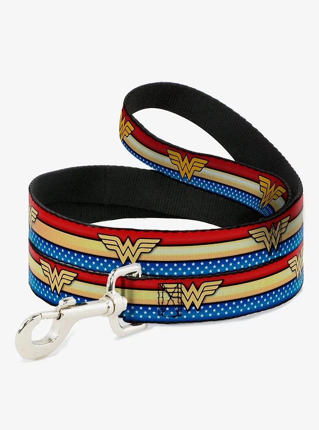 DC Comics Wonder Woman Logo Striped Stars Dog Leash