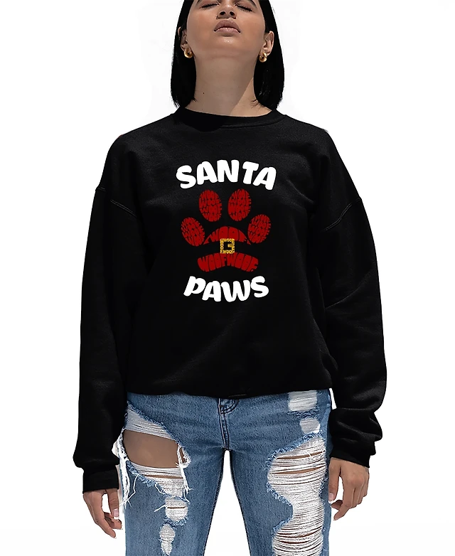 La Pop Art Women's Santa Paws Word Long Sleeve Sweatshirt