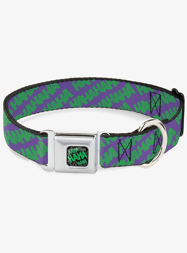 DC Comics Joker Ha Purple Green Seatbelt Buckle Dog Collar
