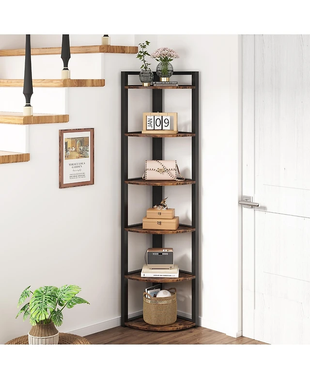 Tribesigns 67 inch Tall Corner Shelf, 6 Tier Rustic Corner Bookshelf Bookcase Storage Rack Standing Shelving Unit for Living Room, Small Space