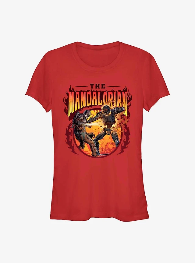 Star Wars The Mandalorian Flame Fight Girls T-Shirt