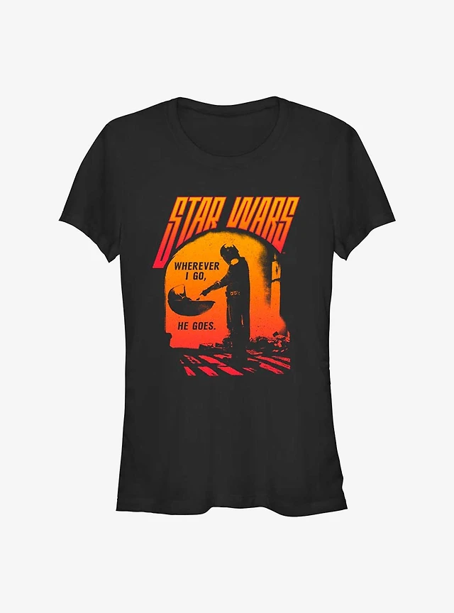 Star Wars The Mandalorian He Goes Girls T-Shirt