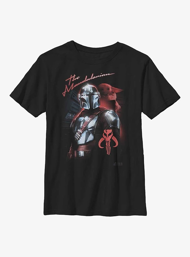 Star Wars The Mandalorian Mando Retro Glow Youth T-Shirt