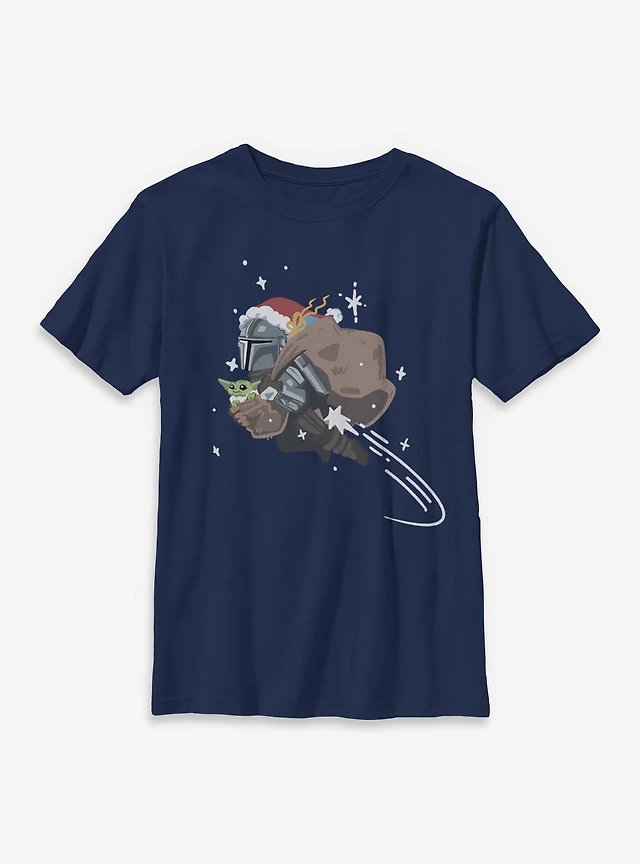 Star Wars The Mandalorian Santa With Grogu Youth T-Shirt
