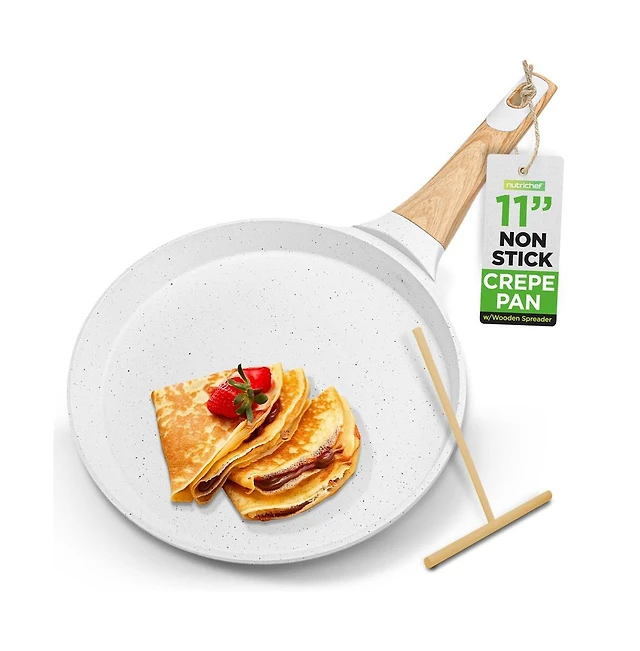 NutriChef Black Marble Nonstick 17.3 Inch Crepe Pan with Wooden Spreader
