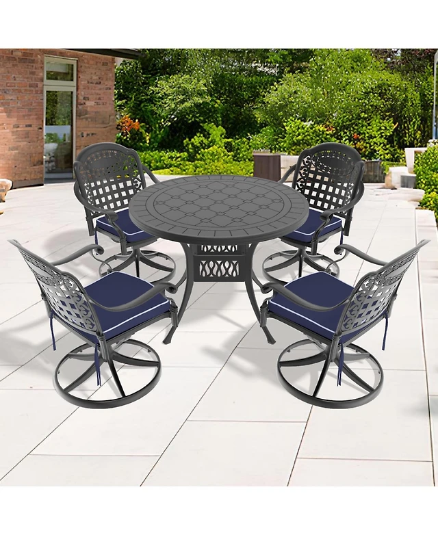 Streamdale 5-Pc Cast Aluminum Dining Set, 4 Swivel Chairs, 47" Round Table