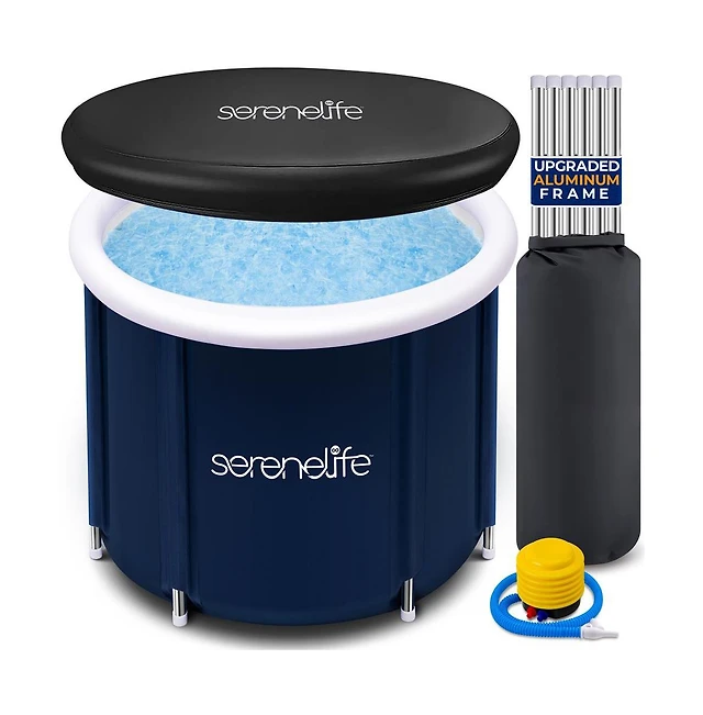 SereneLife Inflatable Cold Plunge Tub with Insulated Design and Neck Support, Black