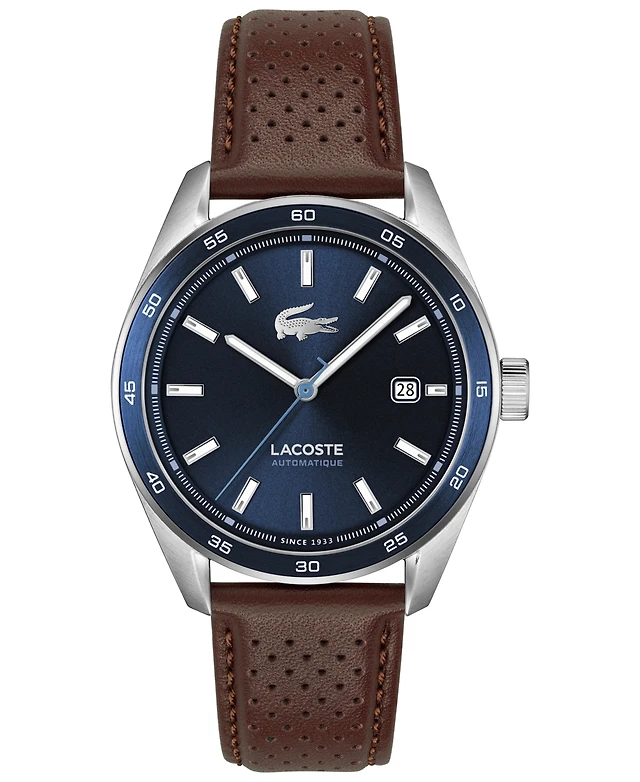 Lacoste Men's Boston Automatique Brown Leather Strap Watch 40mm