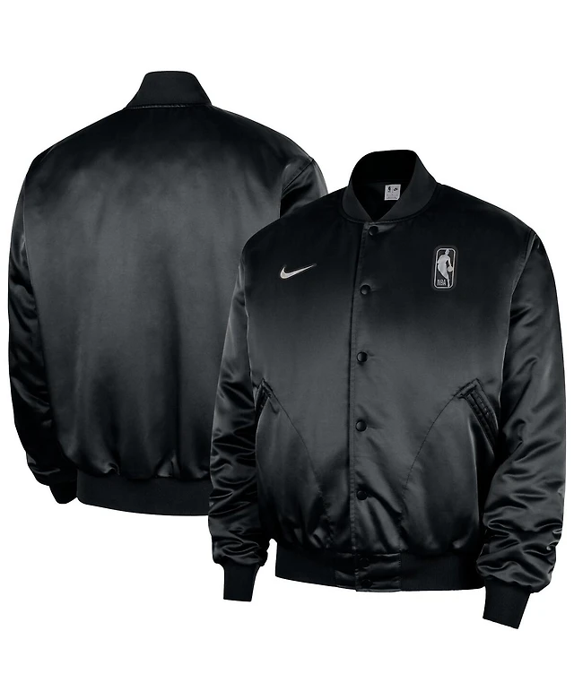 Nike Men's Black Nba Authentic Lenticular Woven Satin Full-Snap Therma-fit Jacket
