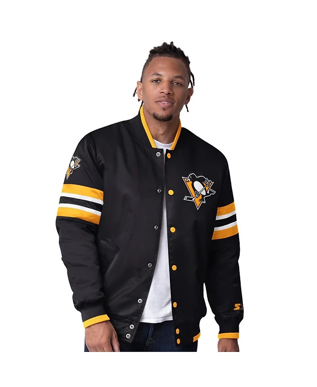 Starter Men's Black Pittsburgh Penguins Scout I Full-Snap Varsity Jacket