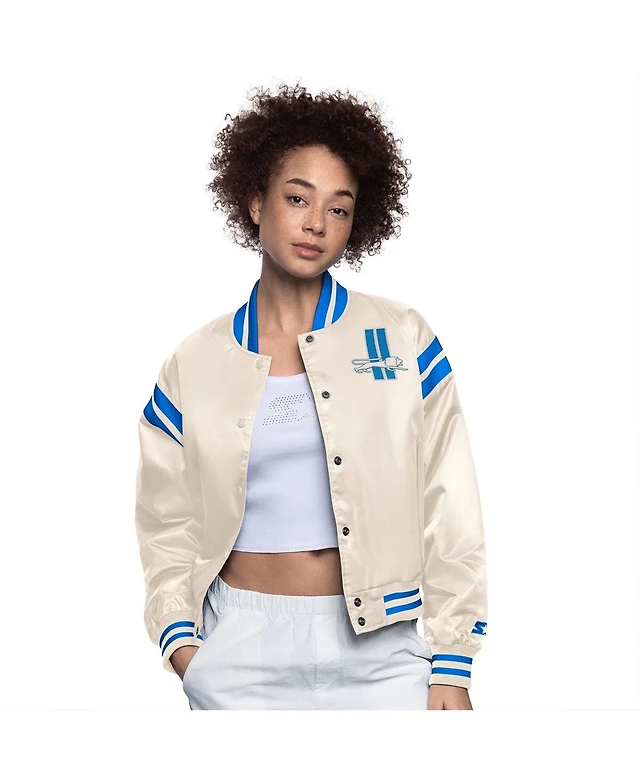 Starter Women's Cream Detroit Lions Full Count Full-Snap Satin Jacket