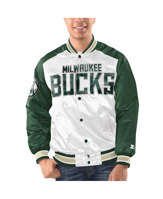 Men's Starter Black Milwaukee Bucks In-Field Play Fashion Satin Full-Zip Varsity Jacket