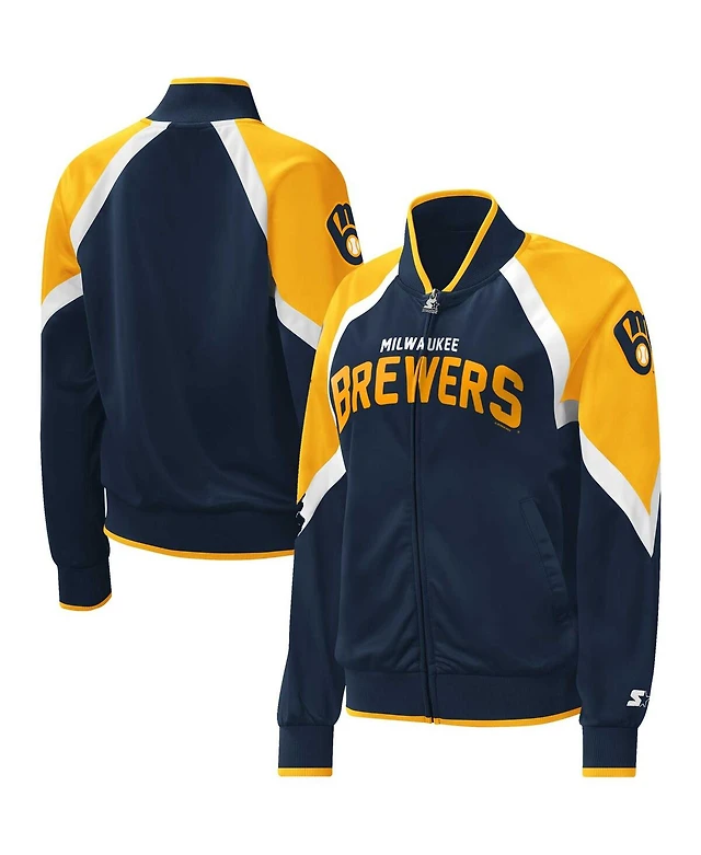 Women's Starter Navy Milwaukee Brewers Touchdown Raglan Full-Zip Track Jacket