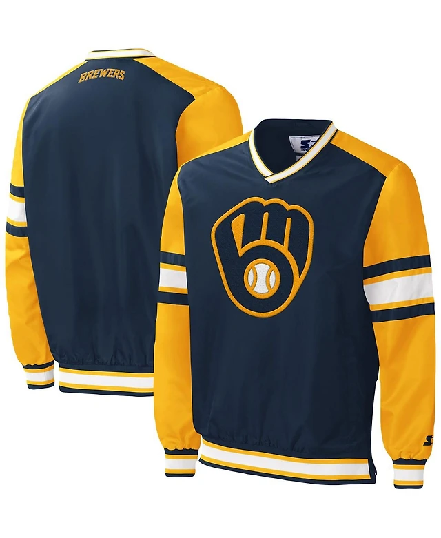 Men's Starter Navy Milwaukee Brewers Yardline V-Neck Pullover Windbreaker