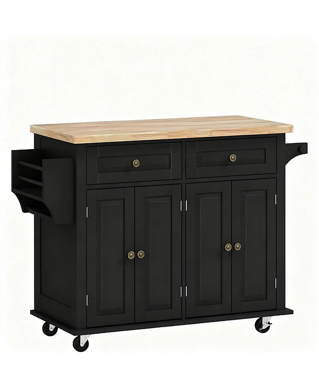 Rolling Kitchen Island Cart with Towel and Spice Rack