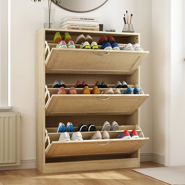 8-Tier Shoe Rack with 2 Drawers, 80'' High Wooden Shoe Cabinet with Adjustable Shelves