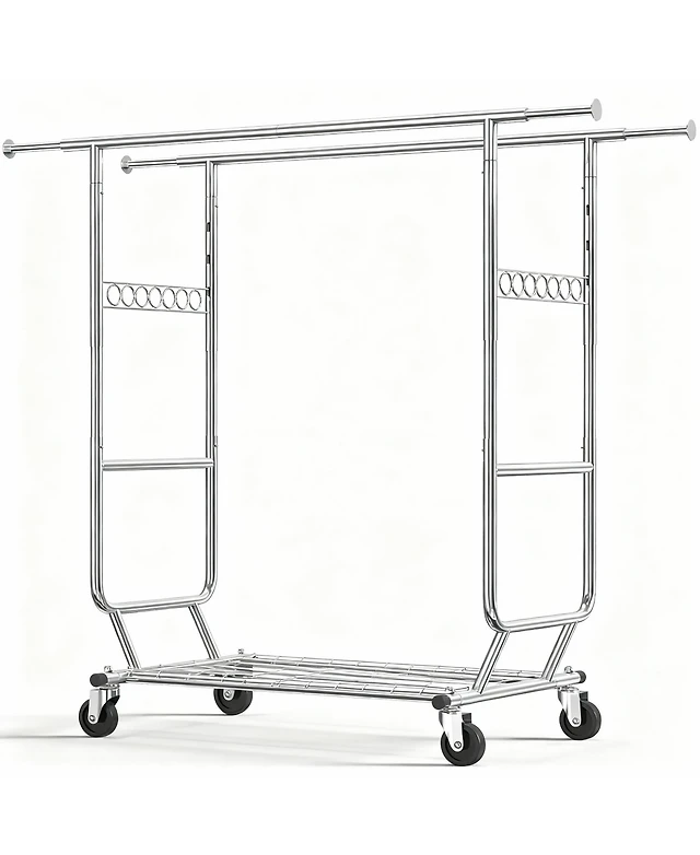 Slickblue Heavy Duty Chrome Plated Garment Rack with Clothes Hanging Bar on Wheels Durable and Mobile