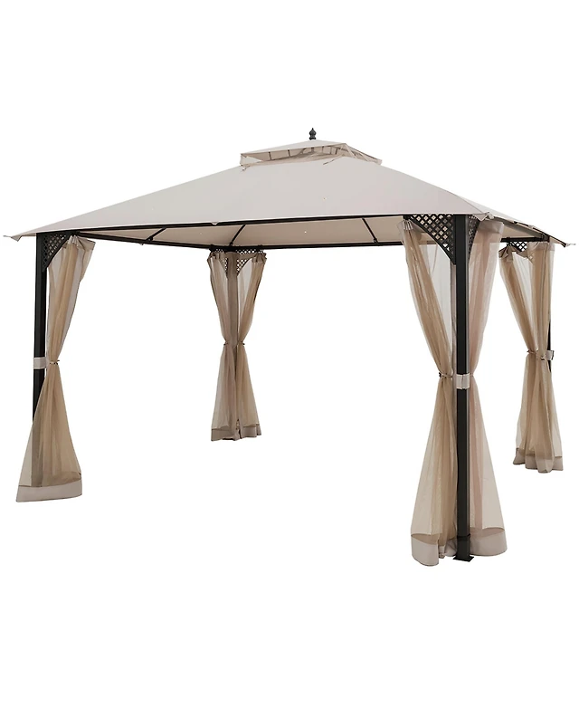 Outsunny 10x12 Hardtop Gazebo with Wooden Frame Metal Roof Gazebo Canopy