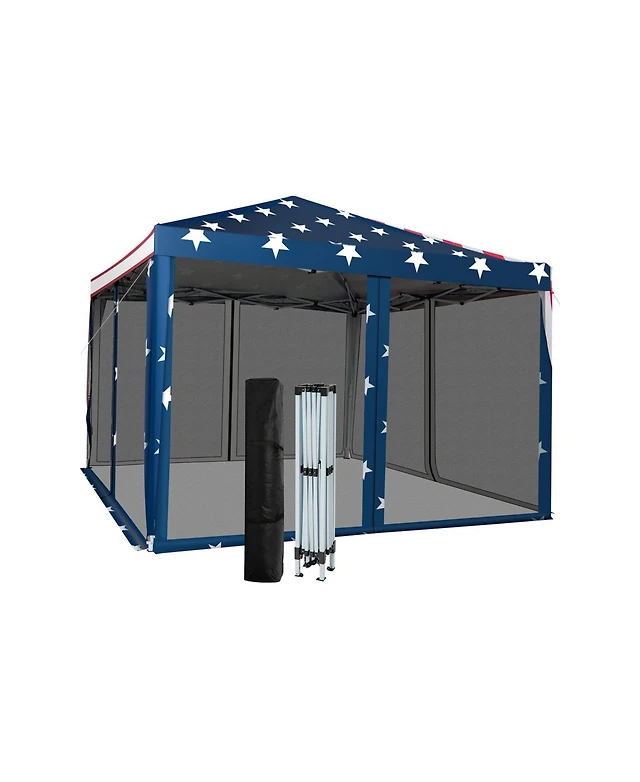 Outsunny 9.7' Pop Up Canopy with Sidewalls & Mesh Windows, Bag, White