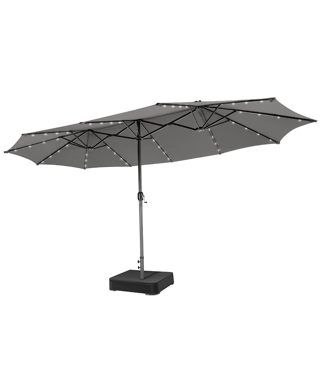 Gymax 15FT Twin Patio Double-Sided Umbrella 48 Solar Led Lights Crank Outdoor