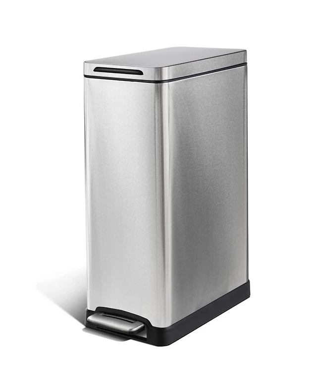 Home Zone Living 3 Gallon Slim Stainless Steel Trash Can with Reeded Pattern, Step Pedal and Soft Close Lid