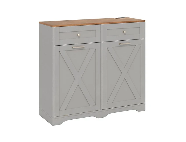 Sugift Tilt Out Trash Can Cabinet with Outlets and Adjustable Shelf