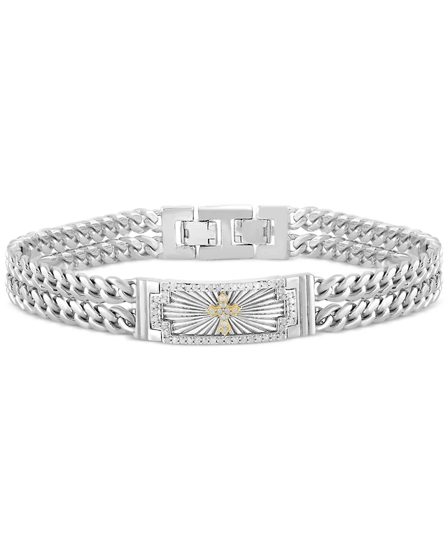Effy Men's Zircon Horizontal Bar Cuban Chain Link Bracelet (7/8 ct. t.w.) in Sterling Silver