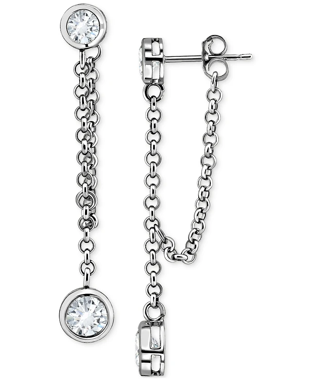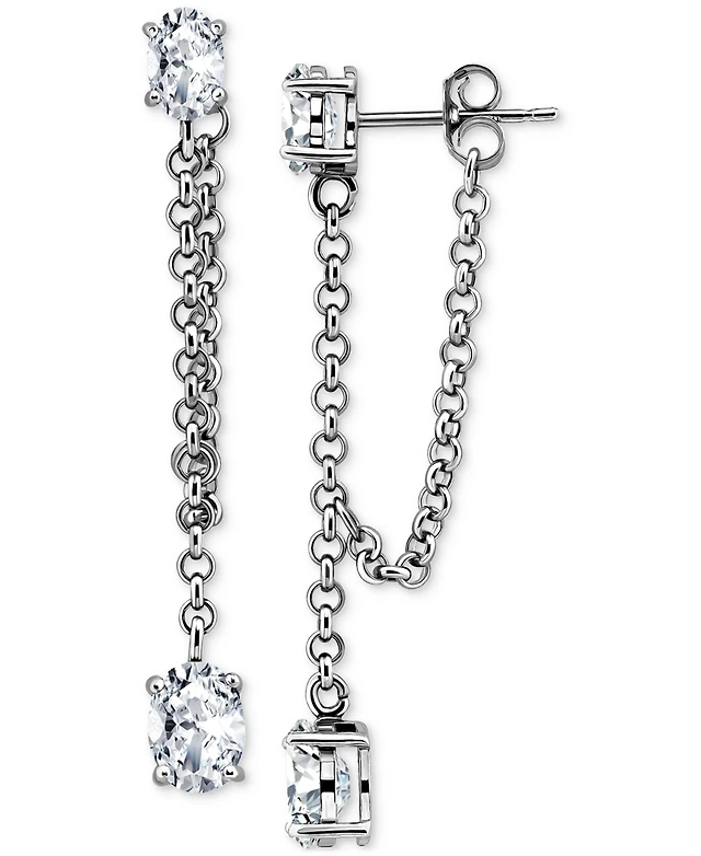 Cubic Zirconia Chain Double Pierced Chain Drop Earrings in Gold-Plated Sterling Silver