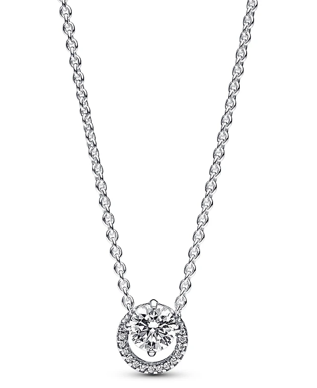 Sterling Silver Round Cz Long Pendant Necklace- Silver, Rose Gold or Plated