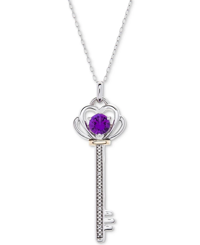 Macy's Women's Amethyst (1-/ ct.t.w.) and Diamond Accent Pendant Necklace in Sterling Silver
