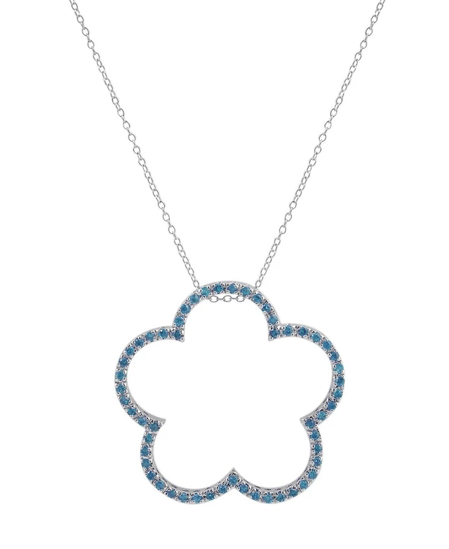 Swiss Blue Topaz (4 ct. t.w.) & Diamond Accent Flower 18" Pendant Necklace in Sterling Silver