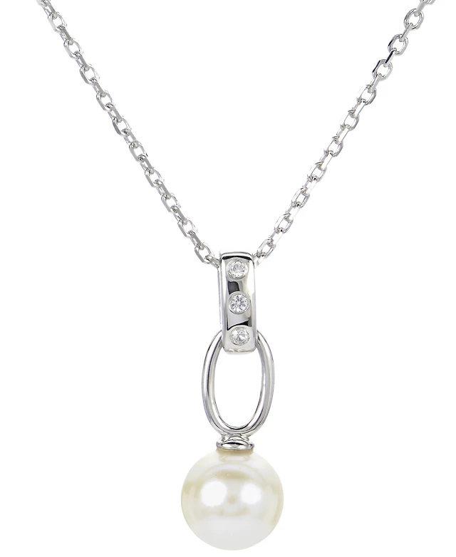 Cultured Freshwater Pearl (8mm) & Lab Grown White Sapphire (1 ct. t.w.) 18" Pendant Necklace in Sterling Silver