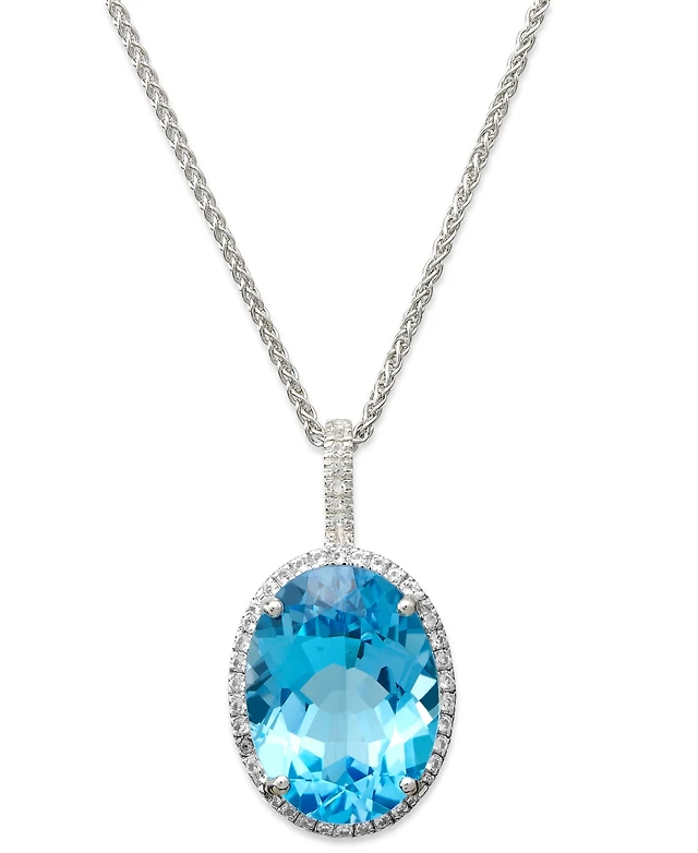 Macy's White Topaz (1/6 ct. t.w.) and Blue Topaz (5/8 ct. t.w.) Drop Pendant Necklace in Sterling Silver