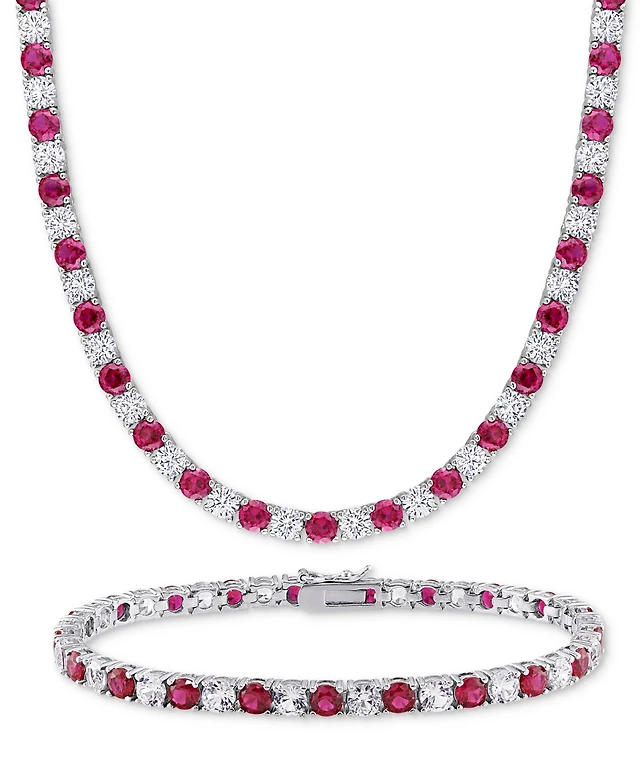2-Pc. Set Lab-Grown Blue Sapphire (23-3/4 ct. t.w.) & White (23-3/8 Collar Necklace Bracelet Sterling Silver (Also i