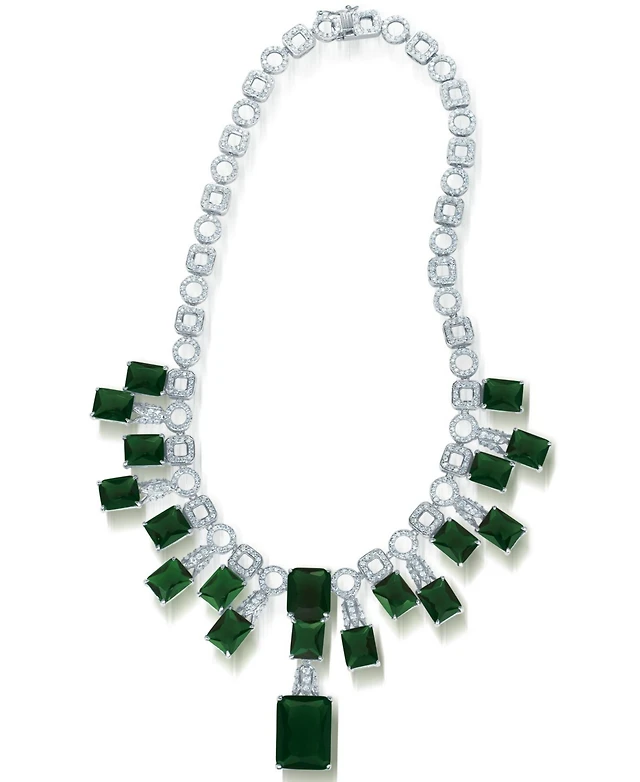 Lab-Created Gemstone 18" Collar Necklace 18k Gold Plated Over Sterling Silver